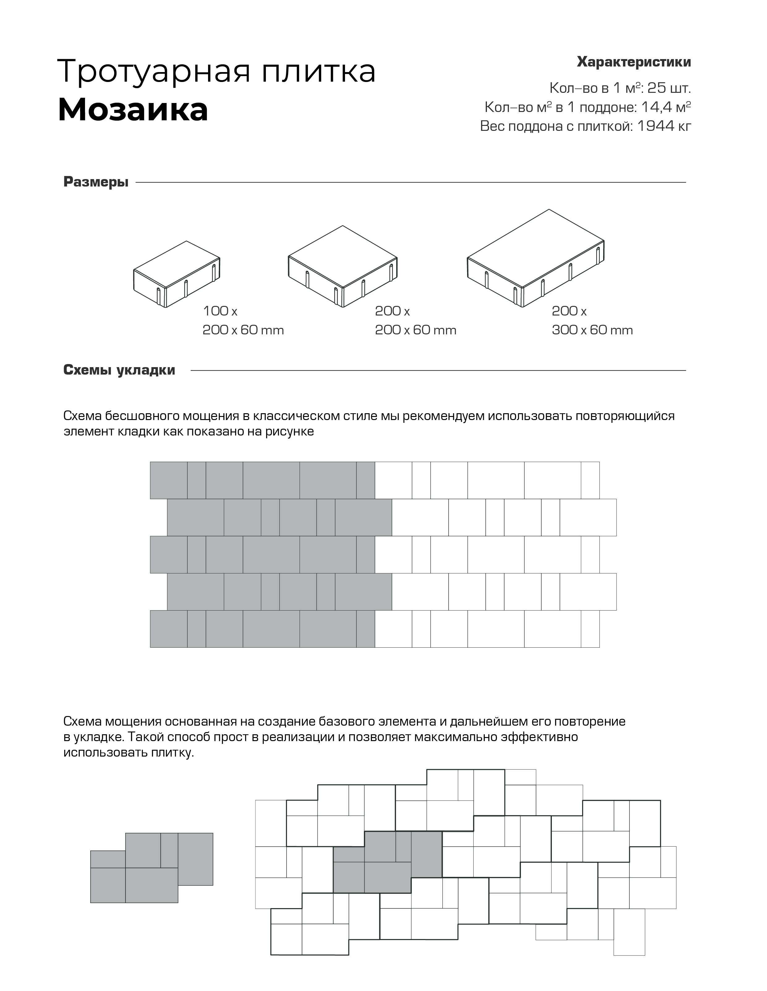 Мозаика — одна из самых выразительных коллекций в ассортименте Stellard. Мультиформатная плитка из трёх элементов разного размера создаёт живой, нешаблонный рисунок мощения — без строгой геометрии, но с чётким современным характером.